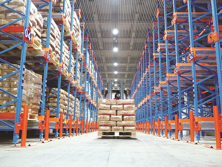辛集保税物流中心,工作人员驾驶叉车搬运货物。富心迪 摄