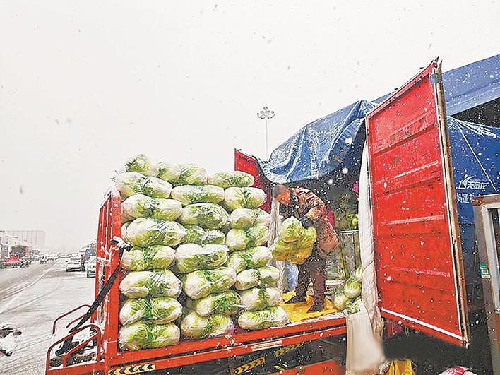 12日清晨,位于石家庄市鹿泉区大河镇的石家庄国际农产品批发交易中心已是一派忙碌景象。这座交易中心,承担着石家庄市85%以上的农副产品供应。面对低温降雪天气,交易中心提前部署,全力保供,一方面提前向商户发布预警信息,并组织商户积极与上游供应商和农产品基地联系沟通,加大货源采购和储备,增加库存量,确保农产品不脱销、不断档。另一方面,也提醒商户安排好物流运输,做好到车引导与绕行提示,确保货品能够及时到达市场。石家庄市交投大河集配物流有限公司副总经理刘刚义说:“这几天蔬菜水果日均进货量3600吨,肉类每天交易量达1600多吨,较之前都有所增加。而且,所有货品价格平稳,未受天气影响。”