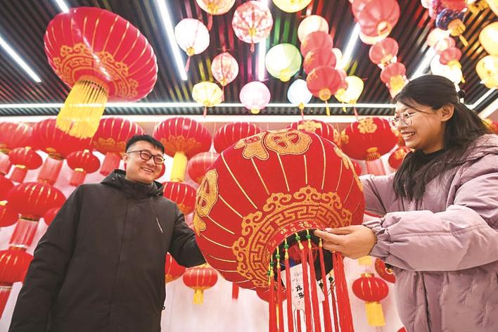 12月10日,在石家庄市藁城区屯头村一家宫灯销售处,顾客在挑选宫灯。