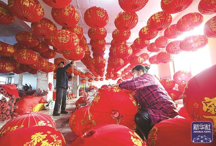 近日,石家庄市藁城区屯头村生产的藁城宫灯进入销售旺季,当地村民加紧赶制传统宫灯,供应市场。