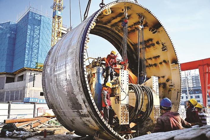 12月9日,中铁二十局工人在石家庄市地铁5号线一期03工区施工现场装载盾构机。 冬日里,中铁二十局等石家庄地铁5号线建设施工单位围绕冬季施工要求,建立气温变化预警机制,开展生产人员冬季施工专项培训,有序推进工作。目前,石家庄地铁5号线建设取得阶段性进展,部分标段已实现双线贯通。新华社记者 牟宇 摄