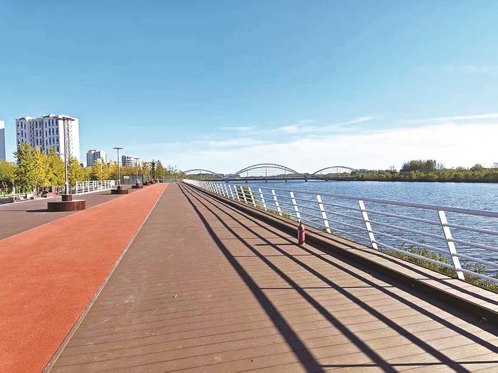 图为石河体育公园7公里环河健身步道。