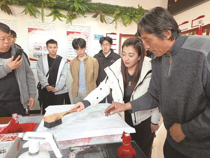 近日,秦皇岛市海港区海滨路街道铁路里社区举办非遗体验活动。活动中,展示了50余位抗美援朝老战士事迹铭牌拓印卷轴。社区居民还在老师的指导下体验清洁砖面、上墨拓印等拓印长城砖文流程,感受精妙的传统技艺。韩松 摄