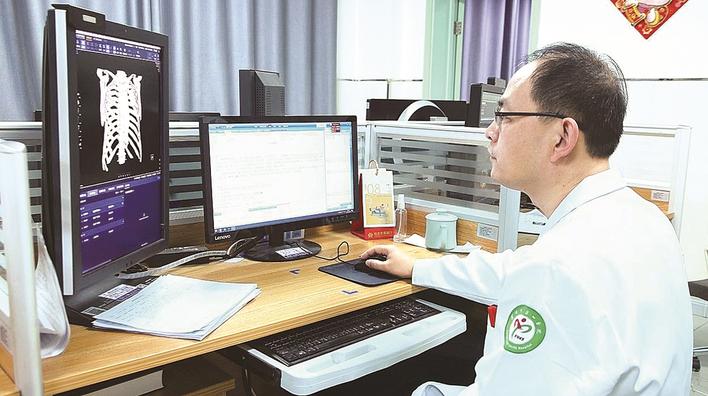 医生通过“数智医共体”平台查看乡镇卫生院上传的患者资料。王建宏 摄