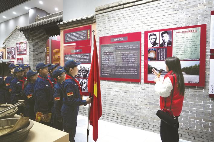 日前,沧州市第二实验小学组织党团教师带领少先队员走进八路军一二〇师冀中抗战红色教育基地,开展“党团队同心忆先烈,公祭日共传红色魂”主题实践活动。图为同学们现场聆听抗战历史。李振 赵依然 摄