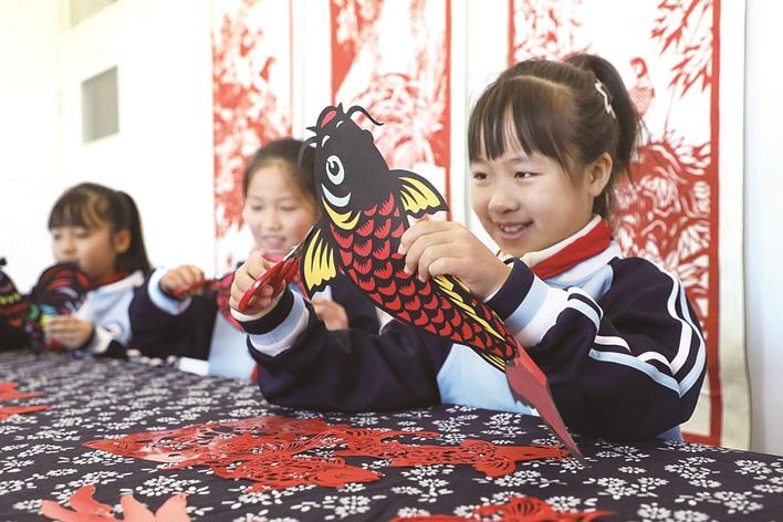 日前,唐山市丰润区李钊庄镇前蒲泊小学开展“非遗剪纸进校园”活动,安排精通剪纸技艺的教师,教授学生剪纸技艺,让孩子们感受传统文化的魅力。图为学生在练习剪纸技艺。朱大勇 摄