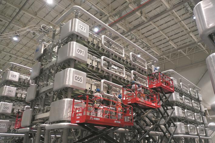 6月4日,张北柔直工程中都换流站年度检修工作全面展开,工作人员在对设备进行试验。李峥 摄