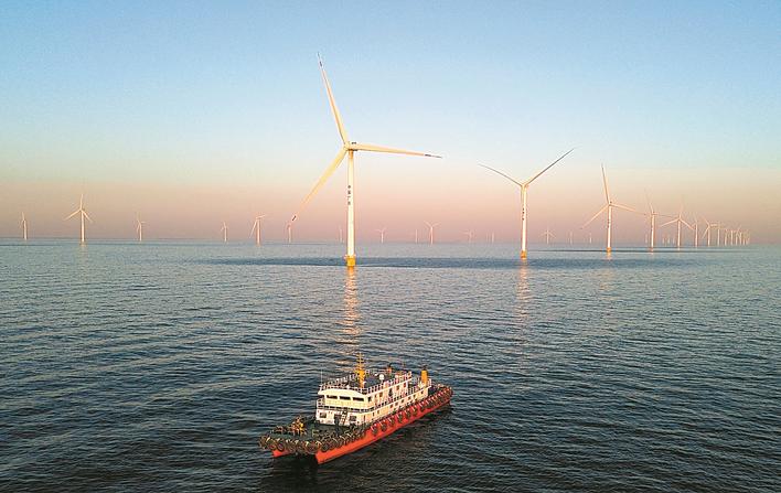 这是位于山东省莱州市海域的海上风电项目。新华社发