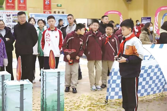 日前,张家口市桥东区首届“智汇桥东 科融共创”科技活动行动营在市第五中学体育馆开营。图为无人机操控展示。赵轲 摄