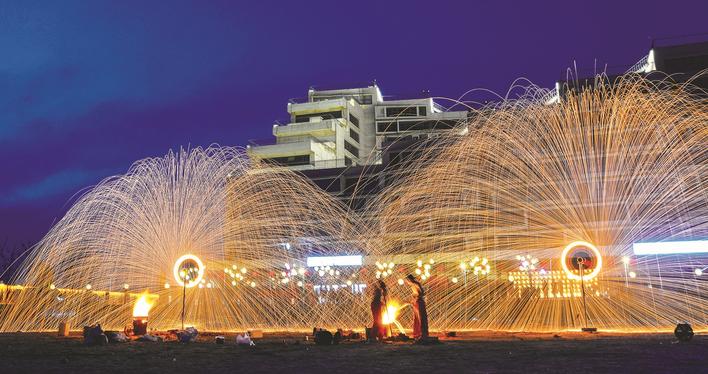 近日,省文化和旅游厅正式发布《关于确定7家旅游度假区为省级旅游度假区的公告》,永清县停云谷旅游度假区入选。图为停云谷国际文化艺术小镇内的打铁花表演。庞趁友 摄