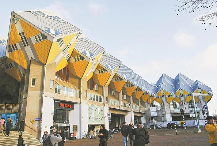 这是12月28日在荷兰鹿特丹拍摄的立体方块屋。 立体方块屋是荷兰鹿特丹的标志性建筑,由荷兰建筑师皮特·布洛姆设计,38个方块屋宛如连接在一起的“魔方”,造型奇特,吸引大量游客前来参观。新华社记者 邵海军 摄