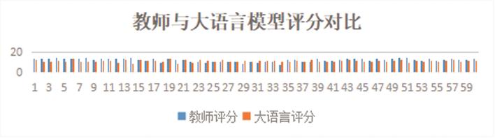 图1.教师评价与大语言模型评价对比(横坐标为学生号数,纵坐标为分数)