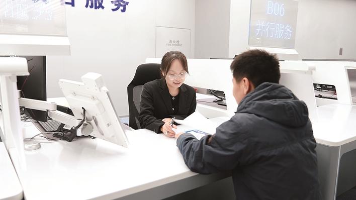石家庄市政务服务中心工作人员为办事人员提供服务。 本报记者 康义涵 摄