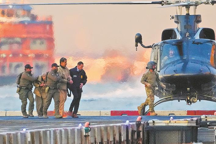 1月5日,在美国纽约,委内瑞拉总统马杜罗在执法人员陪同下前往联邦法院。