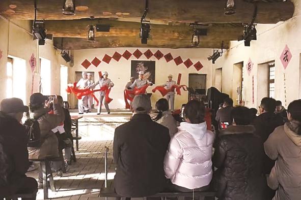 游客在涉县红色记忆小镇观看表演。陈虎斌 摄