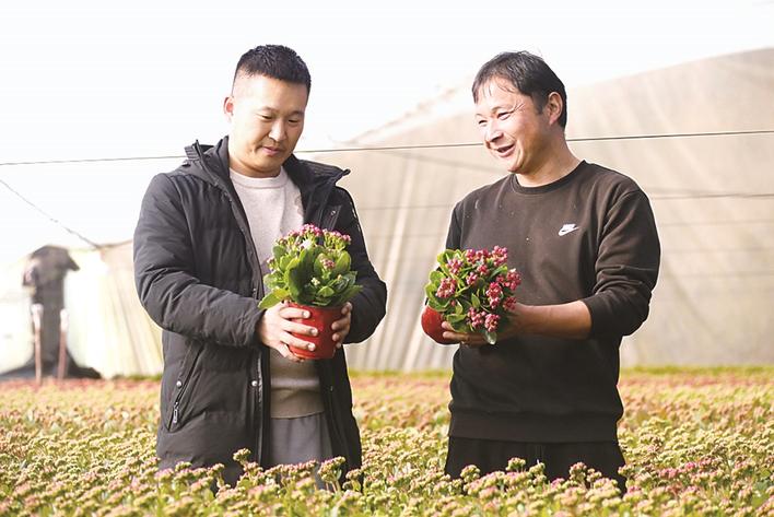 在固安县牛驼镇扬晨花卉种植大棚内,客户选购长寿花。张琛 摄 在固安县牛驼镇扬晨花卉种植大棚内,客户选购长寿花。张琛 摄