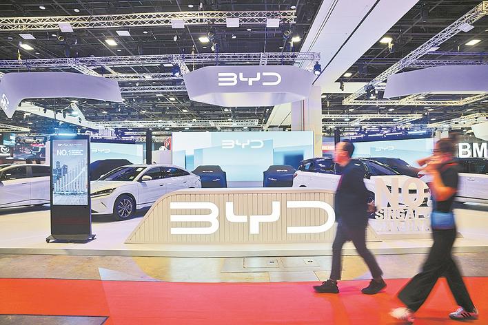 1月8日,在2026年新加坡汽车展上,人们经过中国品牌汽车展台。当日,2026年新加坡汽车展在新加坡新达城会展中心开展。新华社发 (邓智炜摄)