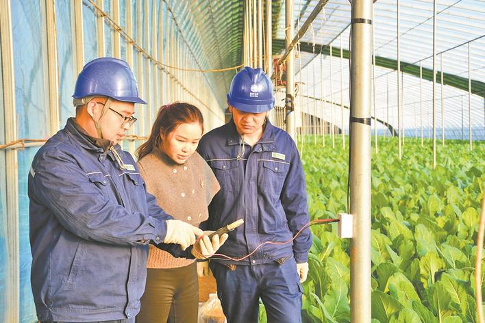 1月12日,国网三河市供电公司运维人员走进皇庄镇坤舆农业科技园,为园区蔬菜大棚种植提供电力保障。 崔章胜 摄