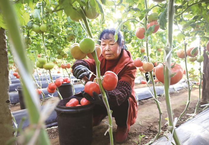 本报讯(通讯员陈放)近日,笔者走进固安县牛驼镇霍辛庄村的温室大棚,棚内绿意盎然,饱满的西红柿挂满枝头,村民们穿梭其间进行采摘、分选,脸上洋溢着收获的喜悦。