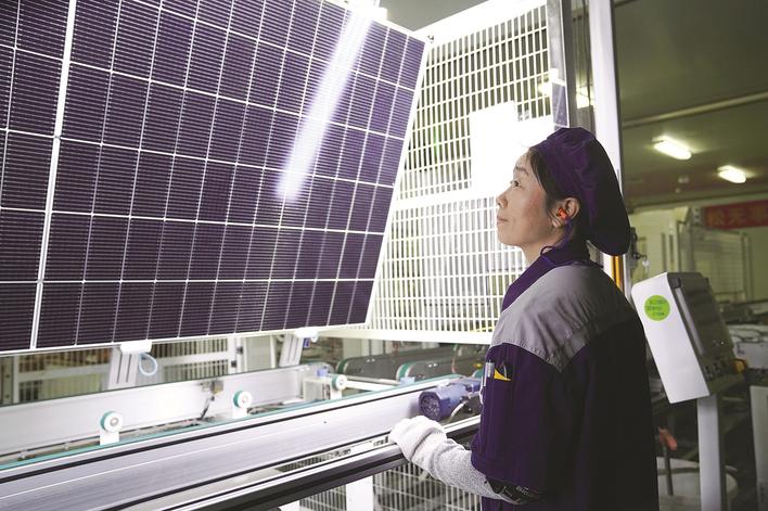 1月12日,在晶澳(邢台)太阳能有限公司生产车间,工人正在对组件进行检查。临近年关,邢台经济开发区各企业开足马力赶制订单,一派忙碌景象。 本报记者 刘杨 通讯员 李院红 摄