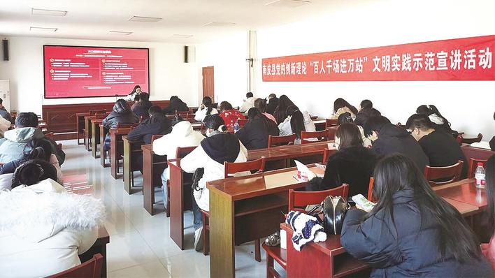 近日,南皮县举办党的创新理论“百人千场进万家”文明实践示范宣讲活动,推动党的创新理论深入基层、深入人心。图为宣讲现场。 赵华靖 朱凯利 摄