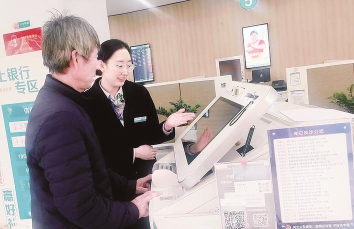农行唐山古冶支行立足厅堂做好银发客户的服务工作,工作人员耐心指导老年客户办理业务,同时将设备设置成大字版,用细致的服务化解老年客户使用智能设备的顾虑,让银发群体也能便捷享受数字金融的便利。李奇鸽 摄