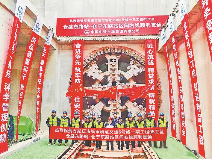 石家庄地铁6号线一期工程仓宁东路站—仓盛东路站区间双线贯通。