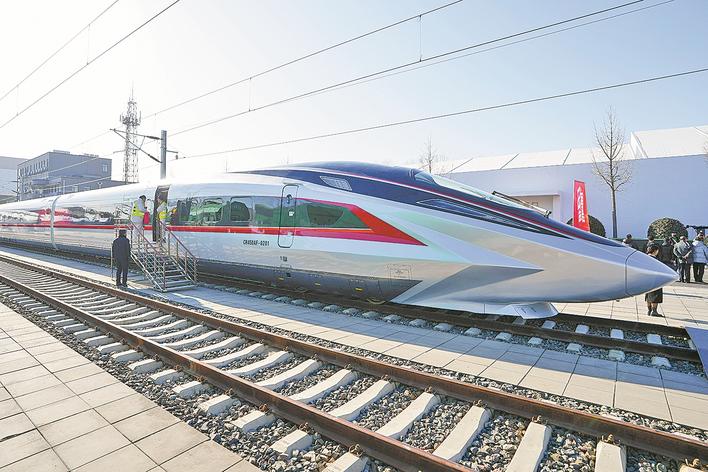 2024年12月29日,运营时速400公里的CR450动车组样车在北京发布。新华社记者 鞠焕宗 摄