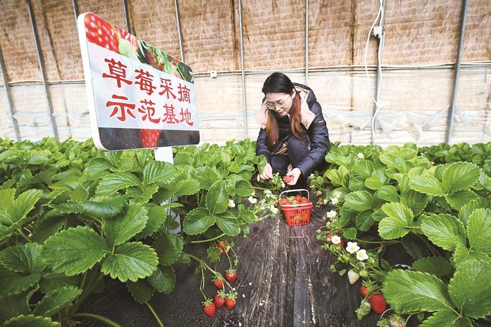 近年来,该镇依托成熟的管护经验、精细的管理培育,种植出的草莓品种多、果肉饱满、果香清甜,深受市场青睐,进一步提升了特色农业产业发展,助力农业增效、农民增收。