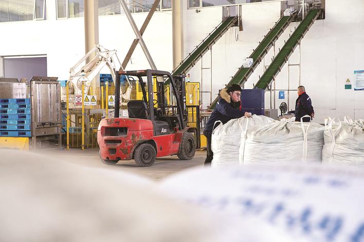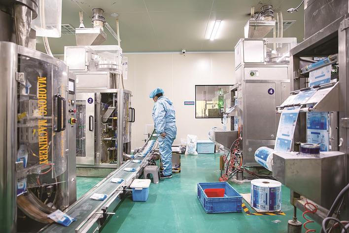 工人正在车间进行包装作业。