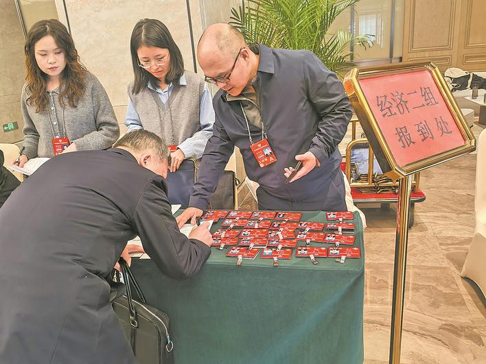 在代表委员驻地报到处,记者看到,代表委员们有序办理签到手续,认真阅读会议材料,不时分享履职心得。报到后,代表委员们抓紧时间修改完善建议、提案等,做好各项准备工作。