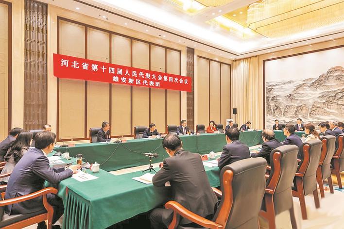 1月26日下午,出席省十四届人大四次会议的雄安新区代表团在驻地审议政府工作报告。本报记者 李泽凯 摄