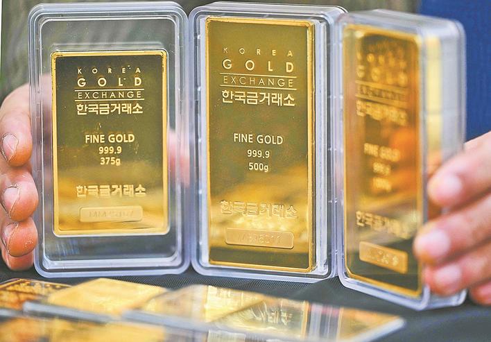 1月26日,在位于首尔的韩国黄金交易所,工作人员展示金条。