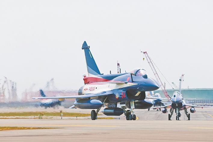 1月27日,中国空军八一飞行表演队飞抵新加坡樟宜机场,应邀参加第十届新加坡航展。 当地时间27日14时许,中国空军八一飞行表演队7架歼-10表演机飞抵新加坡樟宜机场,应邀参加将于2月3日至8日举行的第十届新加坡航展。新华社发(朱姜海摄)