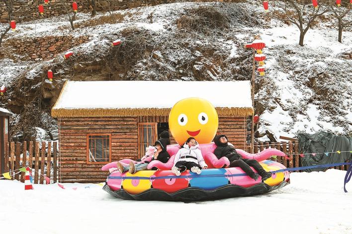 近日,游客在邢台市信都区浆水镇抗大1940街区雪韵小镇游玩。据了解,邢台市精心打造冰雪旅游线路,将城市、泉水、山林等旅游资源巧妙串联,使得“冷”资源产生“热”效应,为冬季旅游市场注入新的活力。 本报记者 刘杨 通讯员 张智 摄
