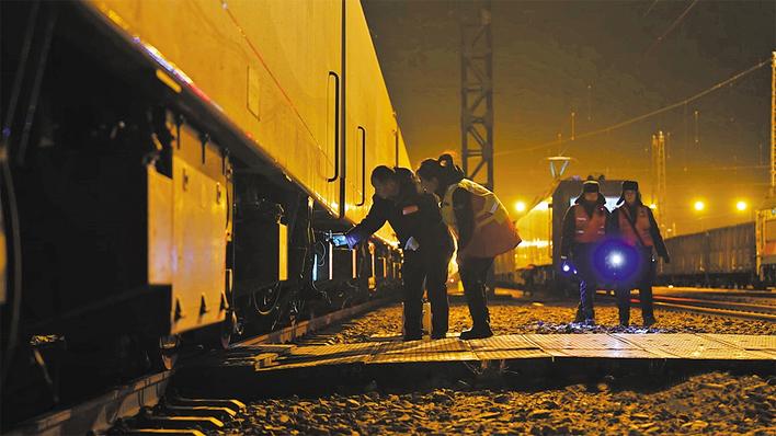 张立杰时而探身、时而钻车,拿着手电筒,仔细查看。“低温环境下车辆部件容易产生裂纹,还可能被防冻剂和煤灰覆盖,得仔细检查才能放心。”