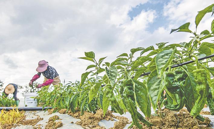 二月三日,海南省琼海市塔洋镇农民在采收辣椒。 新华社发(蒙钟德 摄)