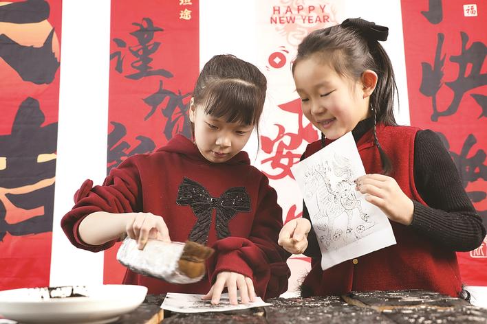 近日,丰润区新华书店开展“感受非遗魅力 享受快乐假期”主题活动,邀请非物质文化遗产代表性传承人传授木版年画、剪纸等制作技艺,让小朋友感受传统文化的魅力,享受快乐假期。图为小朋友在制作木版年画。朱大勇 摄