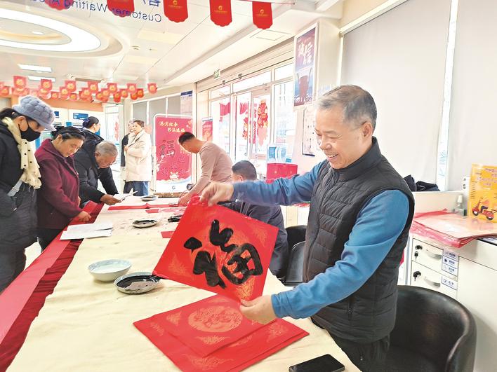 2月以来,建行邢台分行组织行内书法家协会会员赴各网点开展“喜迎新春 港湾送福”活动,为环卫工人、社区老人等群体书写春联、送上祝福,以笔墨传递节日温情,弘扬中华优秀传统文化。