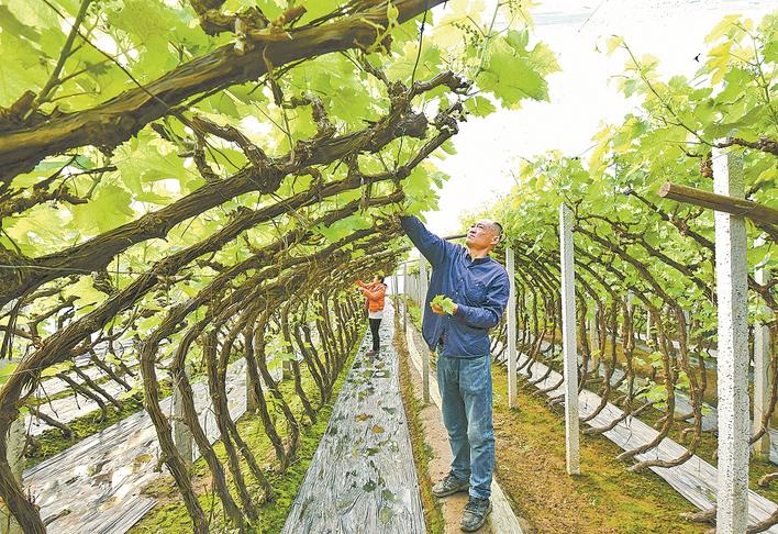 2月4日,唐山海港经济开发区王滩镇的农民在管护大棚葡萄。近年来,唐山海港经济开发区引导农民采取“合作社+产业基地+农户”的模式,大力发展以大棚葡萄、鲜桃、番茄等果蔬为特色的设施农业,促进农民增收,助力乡村振兴。 新华社记者 杨世尧 摄