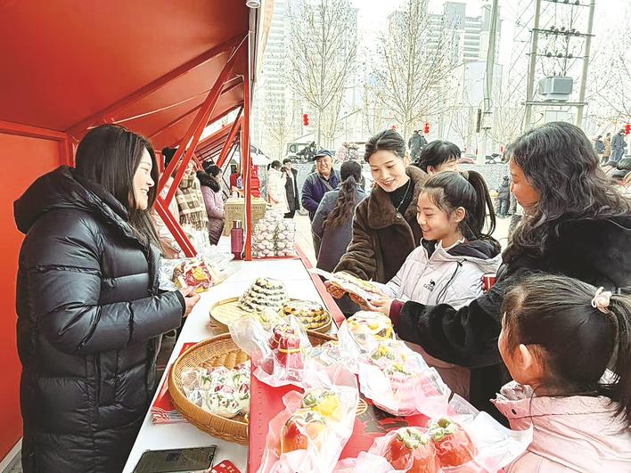 2月3日(农历腊月十六),邯郸市丛台区南吕固乡四留固乡村振兴园年味十足,丛台区年货大集“吕固年货节”正式开门迎客。这场年货大集,将持续至2月13日(农历腊月廿六),各类民俗表演、特产展销等活动将不断呈现。图为展销现场。通讯员 李红莲 袁莉芸 摄