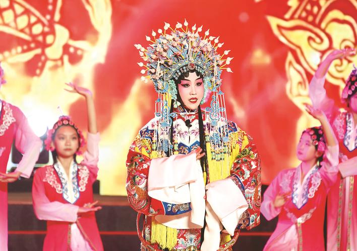 在固安县大剧院内,演员在表演戏曲联唱《国粹芳华》。张琛 摄