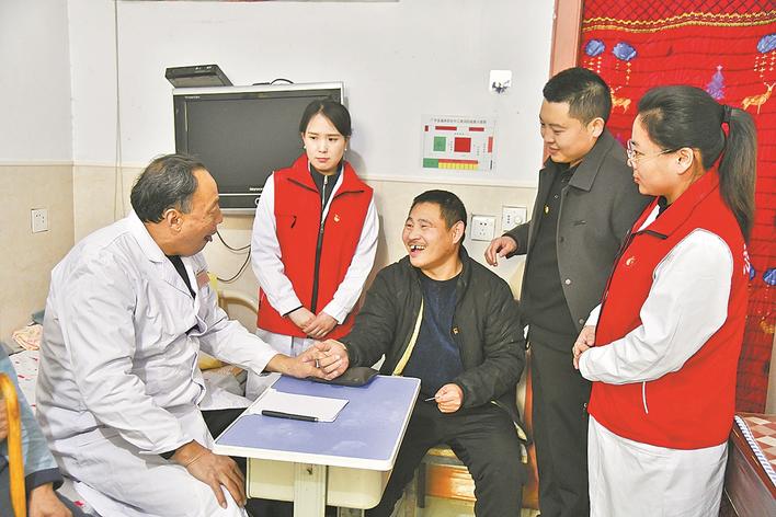 2月10日,邯郸市广平县妇幼保健院党员志愿者带着医疗器械走进福寿居养老院,开展迎新春、送健康义诊活动,为老人测量血压血糖、心电图、B超等,宣讲冬季养生知识,为老人们送去新春的祝福与问候。 杨海斌 魏莹莹 摄
