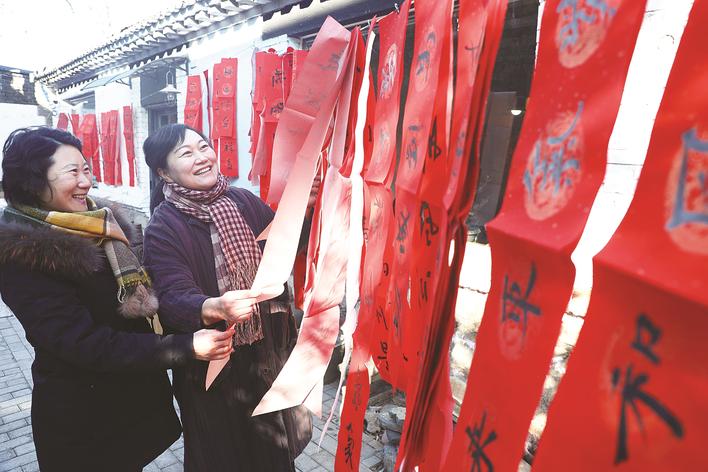 ③村民在挑选喜欢的春联。朱大勇 摄