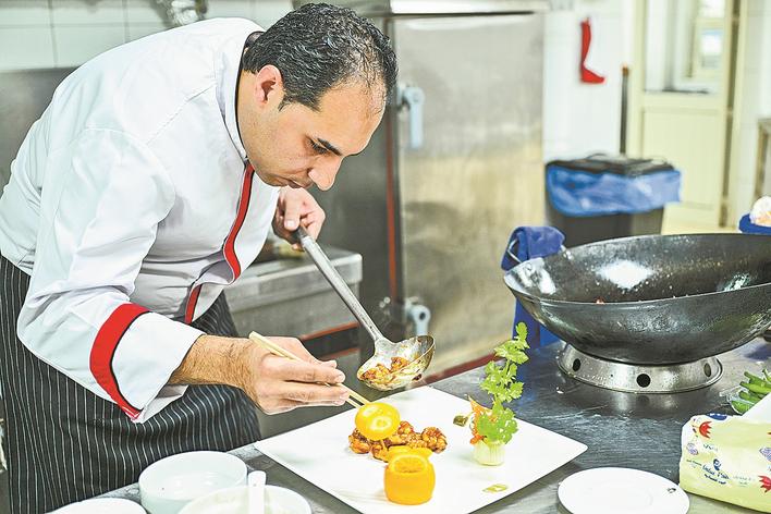 2月11日,厨师在埃及吉萨省举行的烹饪大赛决赛中制作菜品。“2026埃及中餐名厨烹饪大赛暨阳光中国美食之夜”活动11日在埃及吉萨省举行。在当晚举行的决赛中,10名埃及厨师同台竞技、切磋厨艺,在交流中感受中国饮食文化的魅力。 新华社记者 辛梦晨 摄