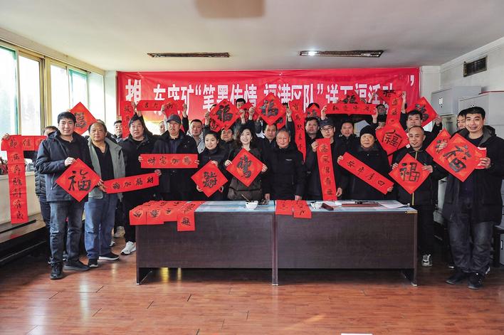 2月6日,冀中能源股份有限公司东庞矿组织开展“笔墨传情 福满区队”送万福活动,该矿工会特邀书法爱好者走进区队班组,为一线职工写春联、送祝福,营造欢度佳节的浓厚氛围。 杨建富 摄