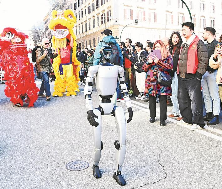 2月22日,在意大利罗马,机器人在新春游园活动上表演。 2月21日至22日,意大利罗马举行新春游园会,庆祝农历马年到来。新华社发(艾莉萨·林格利亚摄)