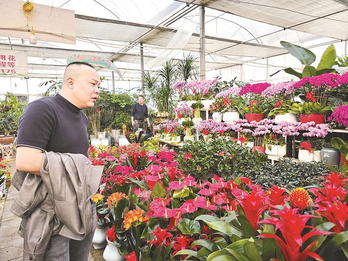 马年春节,衡水市花卉市场迎来鲜花销售高峰,市场内花香四溢、人流如织,新春氛围浓厚。蝴蝶兰、水仙、金橘树等寓意吉祥的花卉绿植备受青睐。一朵朵鲜花不仅扮靓了市民的新春家居,还绽放出基层市场热气腾腾的生机与活力。图为市民在衡水花卉园选购鲜花。 胡竞文 摄