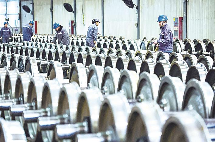 2月24日,在位于石家庄市栾城区的中车石家庄公司转向架车间,工人在对转向架进行检查。张晓峰 摄