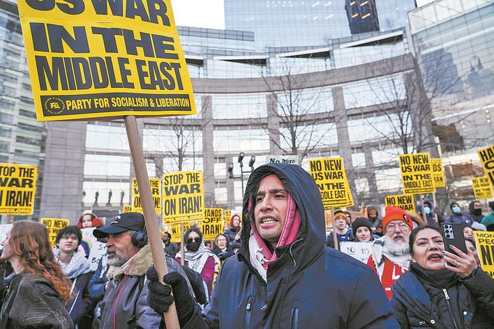 3月2日,人们在美国纽约参加集会,抗议美国对伊朗发动军事打击。新华社发